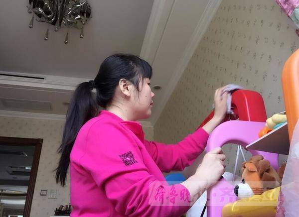 张蕾在打扫客户家玩具房,她虽然年轻,但细心周到的服务赢得了客户的点赞,仅用两年时间就从一星级晋升为四星级月嫂。